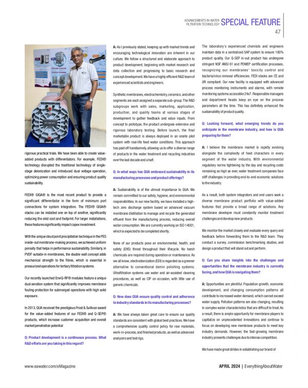 With the launch of FEDI GIGA, QUA Group reaffirms its commitment to innovation in membrane technologies, providing a comprehensive product portfolio to address the water quality needs of the microelectronics and semiconductor markets.