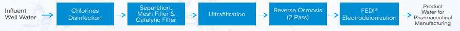 A rapidly expanding pharmaceutical company in Guadalajara, Mexico, required a new manufacturing facility to produce various medicines. The facility needed to be able to produce water with a conductivity (CE) of <1 µS/cm, total organic carbon (TOC) under 0.1 ppb, and silica concentrations below 1 ppm.
