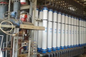 The Q-SEP system follows a pretreatment process comprising of a clarifier, a multigrade filter, a basket strainer and precedes a reverse osmosis treatment system for tertiary treatment. The UF system comprises 52 modules of Q-SEP 6008 arranged in two trains with 26 modules each. Each train has 2 parallel rows of 13 Q-SEP modules each. The UF system is designed to operate in dead-end mode.