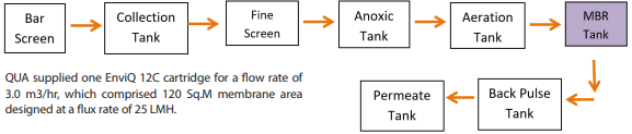 The client had meanwhile added more workforce, and was exploring a brand new sewage treatment plant of an increased capacity of 60 KLD. Their requirement was for a system that would effectively treat the sewage and produce high quality water that could be reused in their process, be able to meet the Pollution Control Board (PCB) norms, and also reduce their raw water intake. Client evaluated and finally chose a membrane bio-reactor (MBR) solution, due to its capability of minimizing unit operations while still producing high quality, ultrafil-tration-grade water for their use.